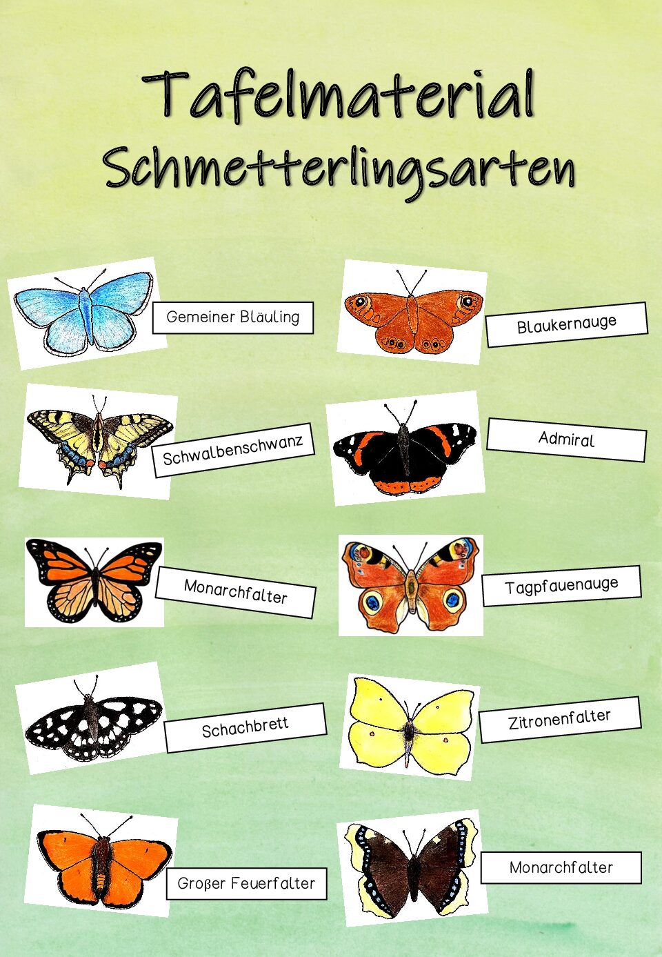 -Tafelmaterial Schmetterlingsarten
